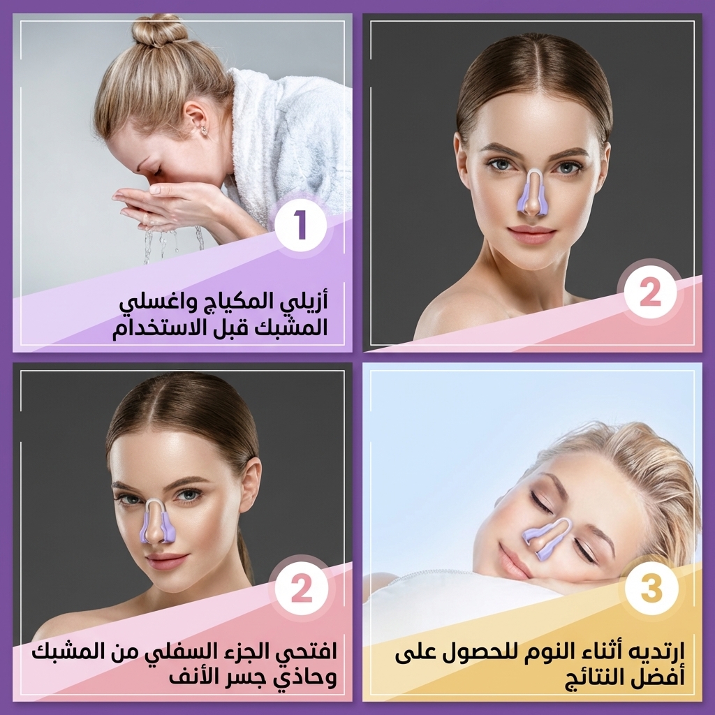 احصلي على أنف مثالي في 4 خطوات سهلة فقط! التصميم المريح يسمح لك بارتداء المشبك أثناء النوم أو الاسترخاء، مما يضمن تثبيتاً آمناً ونتائج تدريجية ملحوظة دون عناء.